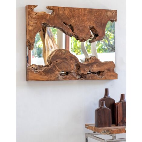 Oglinda este cu adevărat o piesă impresionantă în decorul casei tale! Designul său este unic, oglinda fiind amplasată într-o ladă pătrată realizată din bucăți solide de lemn de TEAK. Din punct de vedere estetic, este mai degrabă o piesă de decor decât o oglindă normală, atrăgând atenția. Lemnul este în culoarea sa naturală, iar dimensiunile întregii structuri sunt satisfăcătoare.