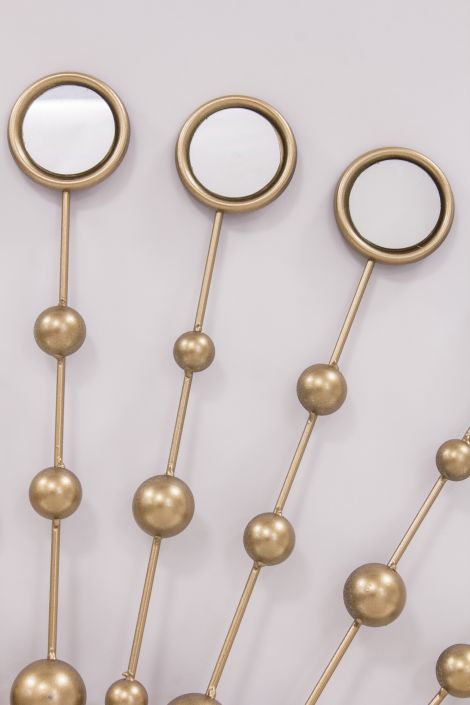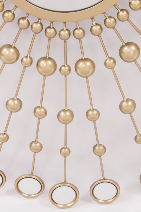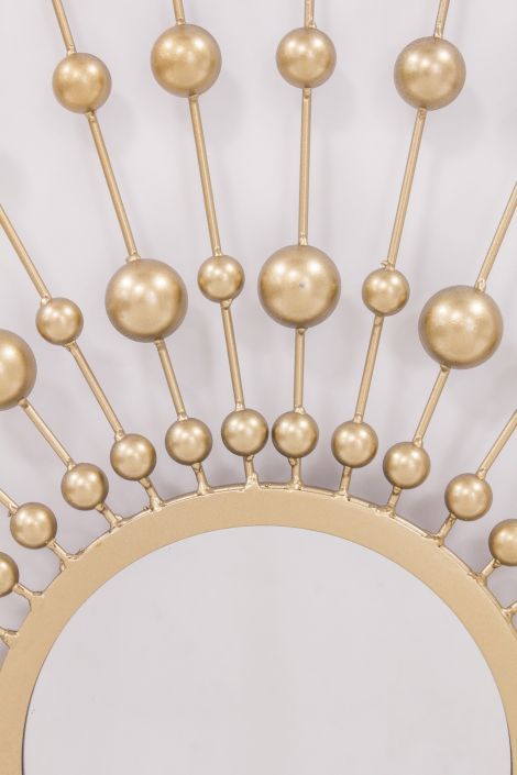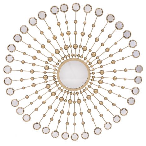 Oglinda perete, aurie, cu pietre. Asemenea unui soare cu multe raze, oglinda de perete se va face remarcata prin detalii si prin culoarea aprinsa. Astfel ca pe acel perete nu va mai fi nevoie de niciun obiect decorativ.